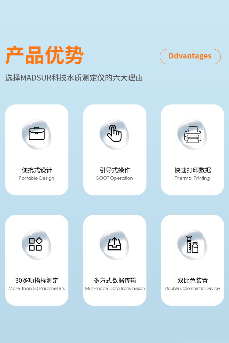5、用戶還可以自行開發(fā)用戶程序和試劑,以適應不同場合不同水體狀況。